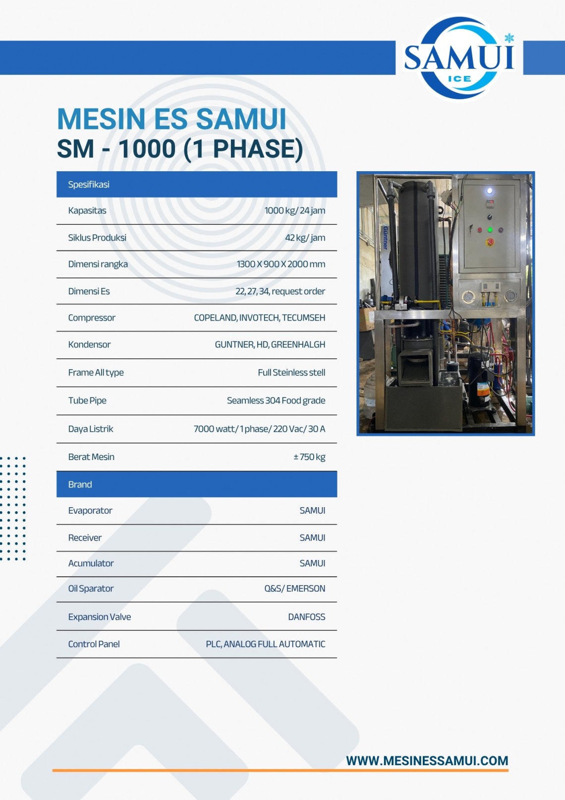- Mesin Es Kristal SAMUI SM-1000 (1 Phase), Kapasitas 1 Ton